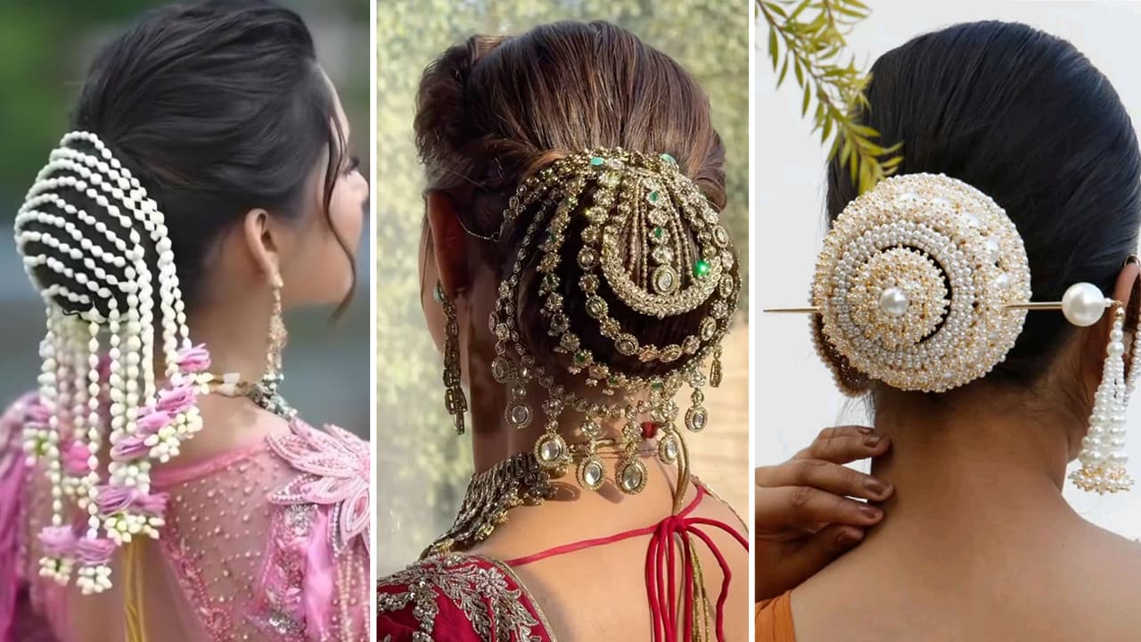 Connect it with Matha Patti at the front and bun jewelery at the back. You can make this type of hairstyle with saree, lehenga or any ethnic attire. This gives a wonderful bridal or festive look.
