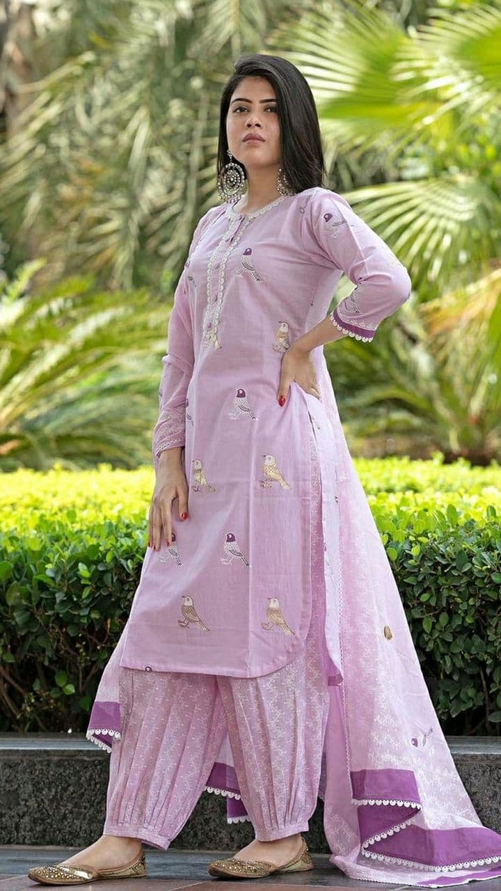 In this design, you will get minimal collar Afghani suit set in the range of Rs 1000. This simple cotton kurta, full sleeves and surrounded afghani looks very beautiful. This is in high demand in readymade.
