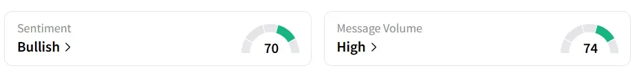 Cameco stock traded over 14% higher in Tuesday’s premarket. On Stocktwits, retail sentiment around the stock jumped to ‘bullish’ from ‘bearish’ territory the previous day. Message volume improved to ‘high’ from ‘low’ levels in 24 hours.
