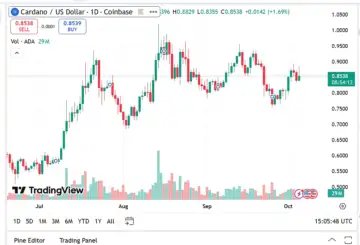 Cardano (ADA) is at $0.8538, up 1.77% in the last 24 hours based on a $31.34 billion market cap. The 24-hour volume is $1.18 billion, off 16.03% as long-term investors remain optimistic about the network fundamentals.