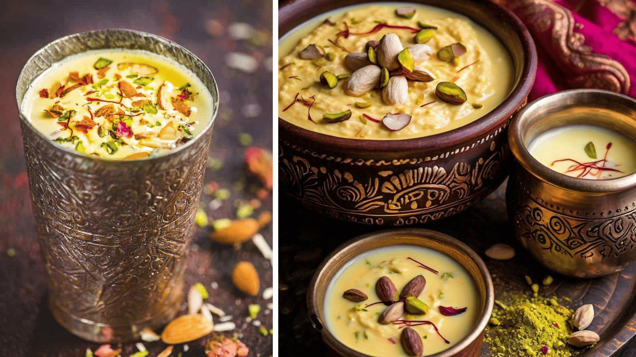 Badam Milk: Nutty almond-flavoured milk enriched with saffron, perfect for festive warmth.
