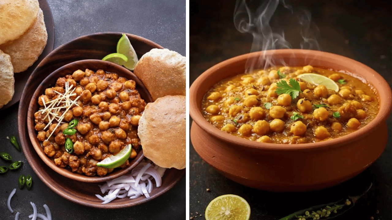 Chole: Chickpeas simmered in a spicy and tangy tomato-onion gravy.