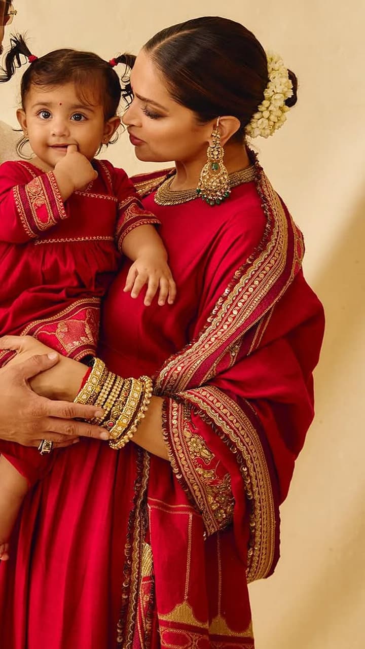 If you want to get a classic look on Bhai Dooj, then try a thread work Sharara suit like Deepika Padukone. Add heavy earrings with this suit.