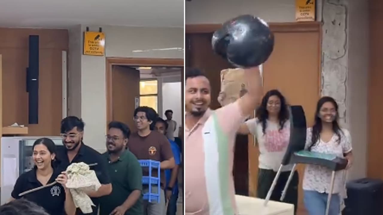 On their final day of lectures, IIT Bombay students celebrated a “No Bag Day,” using creative alternatives like buckets, chairs, and even a bicycle to carry their belongings. The viral video of the spectacle concluded with a surprise visit from a stray dog, adding to the memorable and fun atmosphere.