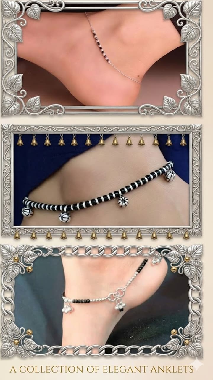 Chandi ki Payal: Aesthetic look in minimal, black beads silver anklets will be useful in daily wear. Black Beads Silver Anklet Designs Chandi Ki Payal Collections