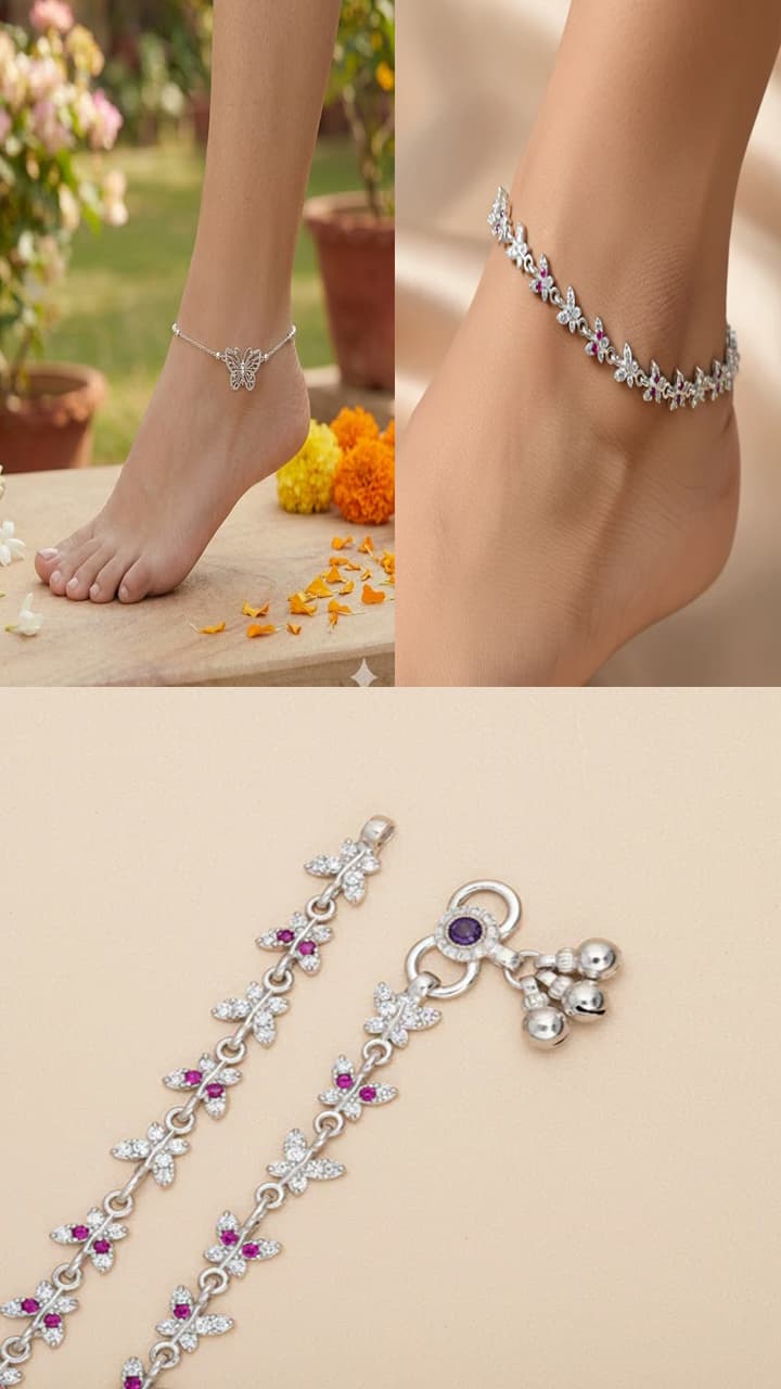 If you are looking for oxidized anklets in silver, then you can see this design. This anklet has been made by adding butterfly. It will look perfect with ethnic wear.