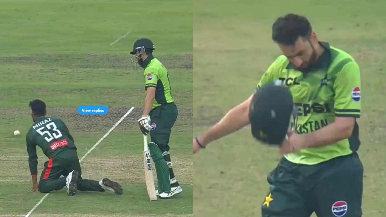 Dhaka: There was tremendous drama over a run out in the second ODI match played between Pakistan and Bangladesh in Dhaka on Friday. What happened was that during Pakistan’s batting, Mohammad Rizwan played a shot. Salman Aga, standing at the non-striker’s end, felt that a run would be scored and he started running. But when he realized that scoring runs was not possible, he started returning back to the crease. Meanwhile, while trying to catch the ball, Bangladeshi bowler Mehdi Hasan came in the way of Salman.