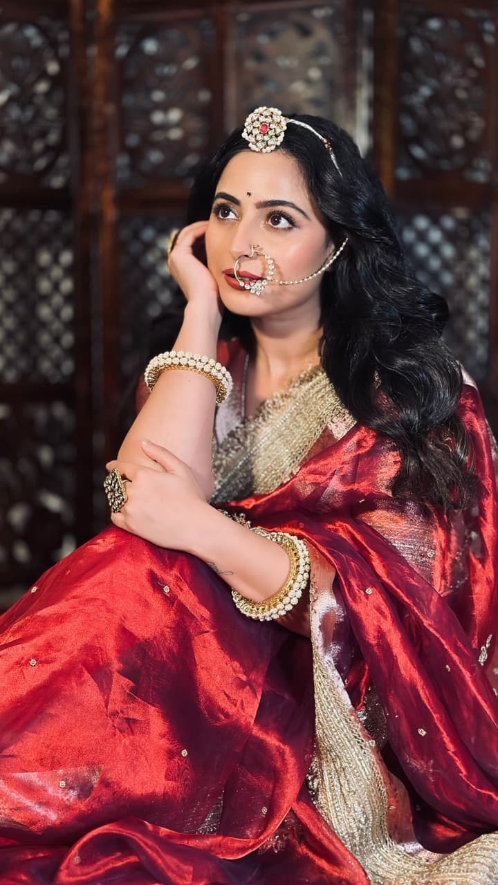 Soft open hair instead of braided bun gives a rich look for the party. The hair has been lifted from the front and curled downwards, while there are flowers on the back side, which complete the look.