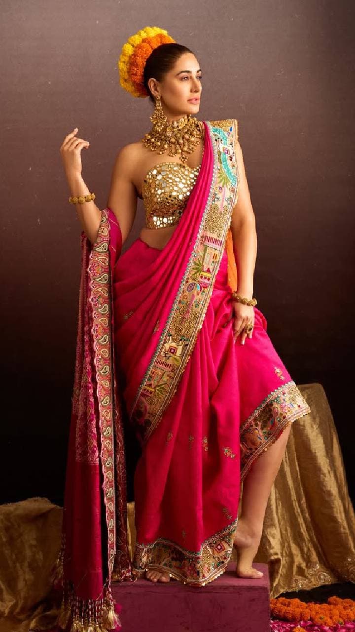 Instead of decorating your hair with expensive flowers, you can also decorate your hair with cheap marigold flowers. Make yourself look beautiful in Haldi function.