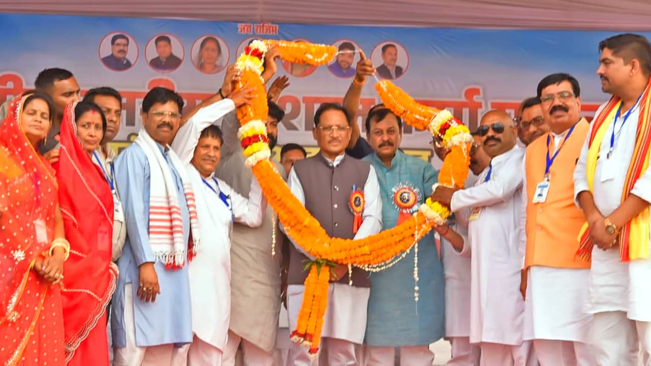 CM Vishnu Dev Sai blessed 13 couples in the Karma Mahotsav and mass marriage program in Bharar, Durg. He made development announcements worth Rs 60 lakh and also highlighted the schemes and achievements of the state.