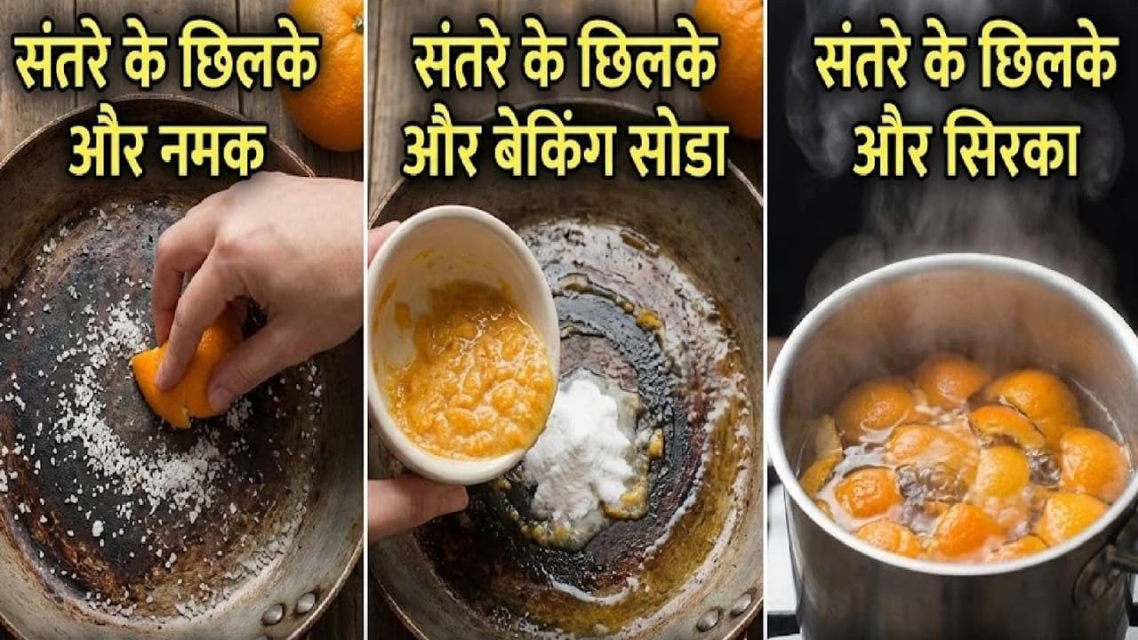Kitchen Cleaning Hacks: It is common for the pan to turn black due to daily cooking. A burnt pan not only looks bad but is also difficult to clean. Instead of using expensive chemical cleaners, you can get your pans shining again in minutes by using orange peels. The natural acids and oils present in orange peels are very effective in removing grease and burn marks. Let us know 3 easy kitchen hacks to clean your pan with orange peels.