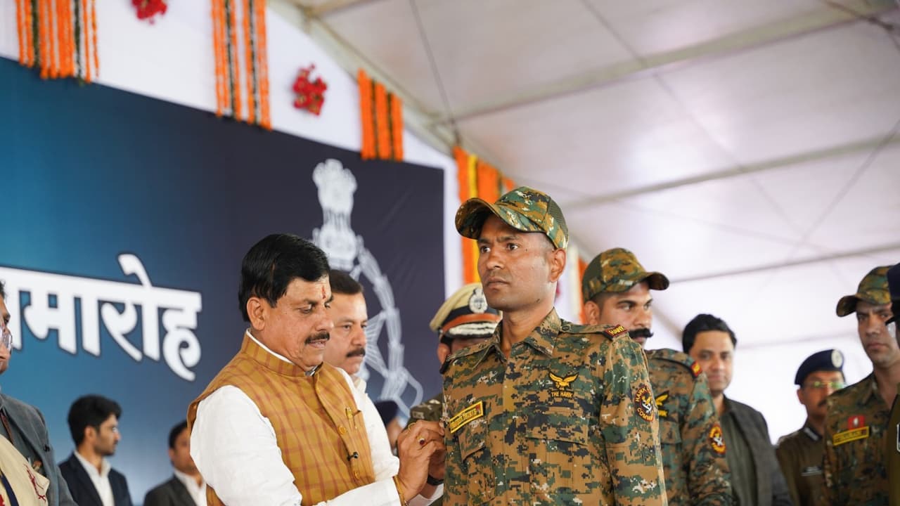 Madhya Pradesh CM Mohan Yadav awarded out-of-turn promotions to 60 soldiers for their courage in Naxal encounters in Balaghat. He also paid tribute to martyred soldiers and inaugurated 32 ISO-compliant government offices in the district.