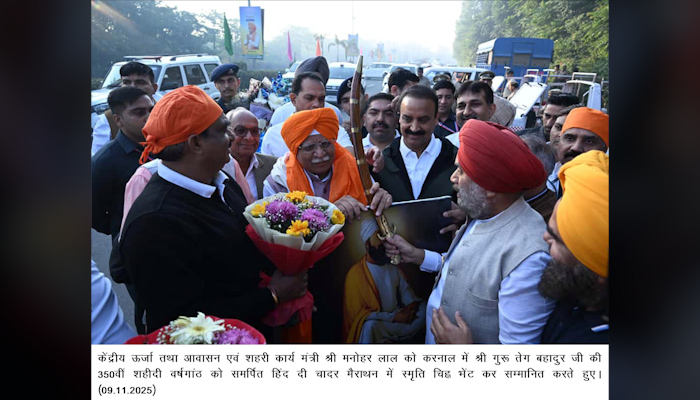 He informed that programmes commemorating the 350th martyrdom anniversary of Sri Guru Tegh Bahadur Ji began on November 1 and will continue until November 25, with the main event to be organized in Kurukshetra. The Chief Minister said that four religious processions (yatras) will be taken out, the first of which was flagged off today from Rori in Sirsa district.