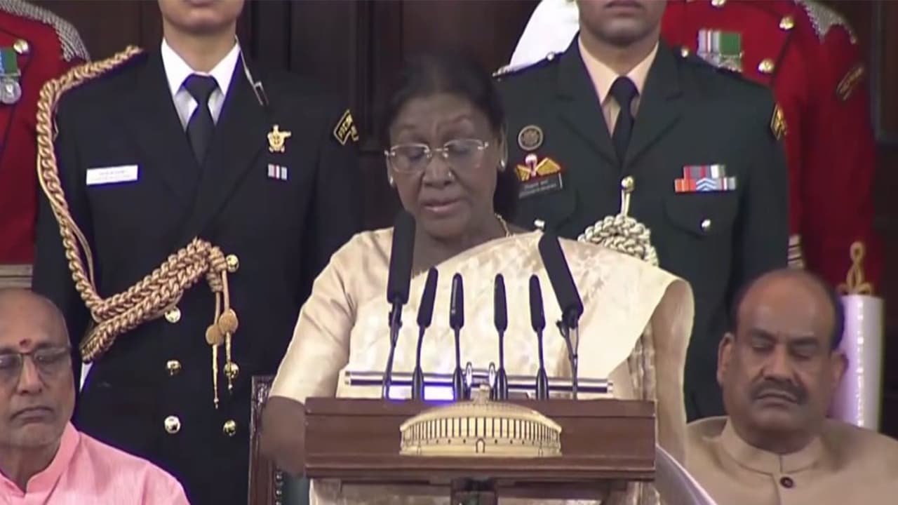 Praising the curbng of social evils by taking historic steps such as banning triple talaq, and empowering sisters and daughters, President Murmu also highlighted the GST reform, repeal of Article 370, the Nari Shakti Bandhan Act (Women’s Reservation Bill) and other examples of ushering in a new era of development, especially for women. “By curbing the social evil associated with triple talaq, Parliament took historic steps toward the empowerment and social justice of our sisters and daughters. The Goods and Services Tax, the biggest tax reform since independence, was implemented to promote the country’s economic integration. The repeal of Article 370 removed a barrier to the country’s overall political integration. The Nari Shakti Bandhan Act will usher in a new era of women-led development,” President Murmu said.