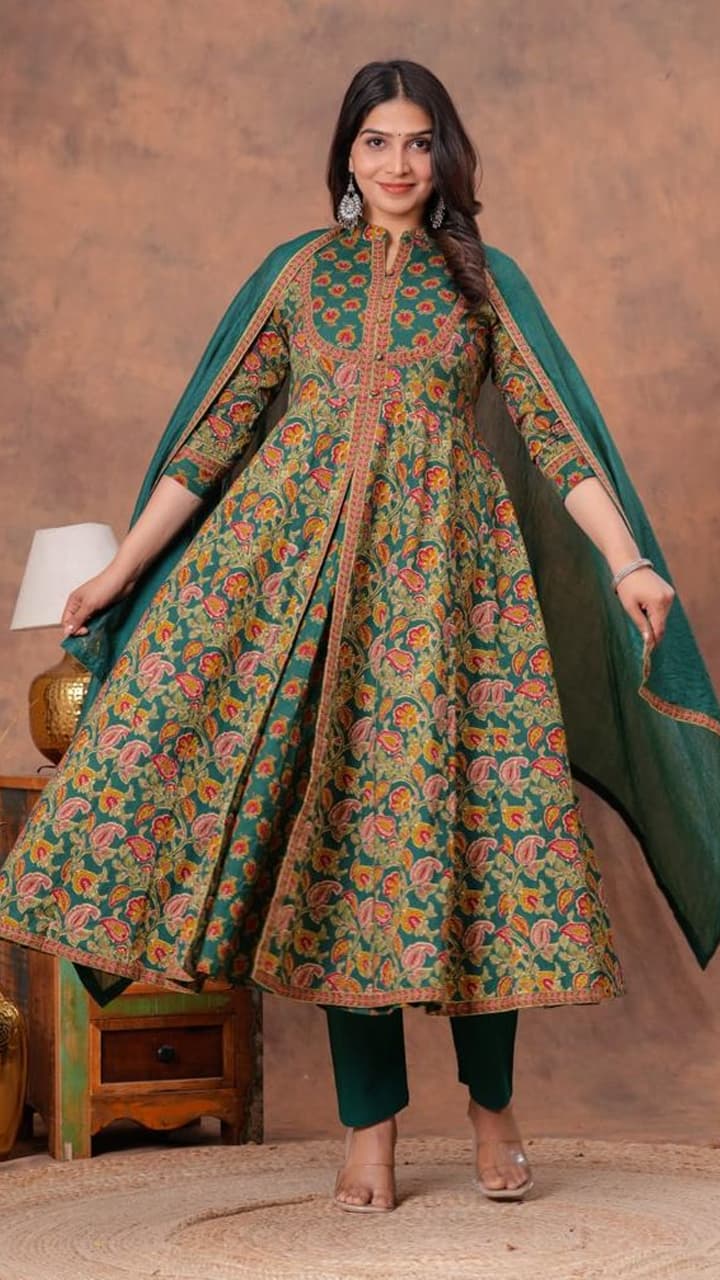 Flowy silhouette and soft colors, cotton Anarkali dupatta set is a favorite choice from college girls to young working women. If you want a girlish, fresh and elegant look, then choose these 5 designs.
