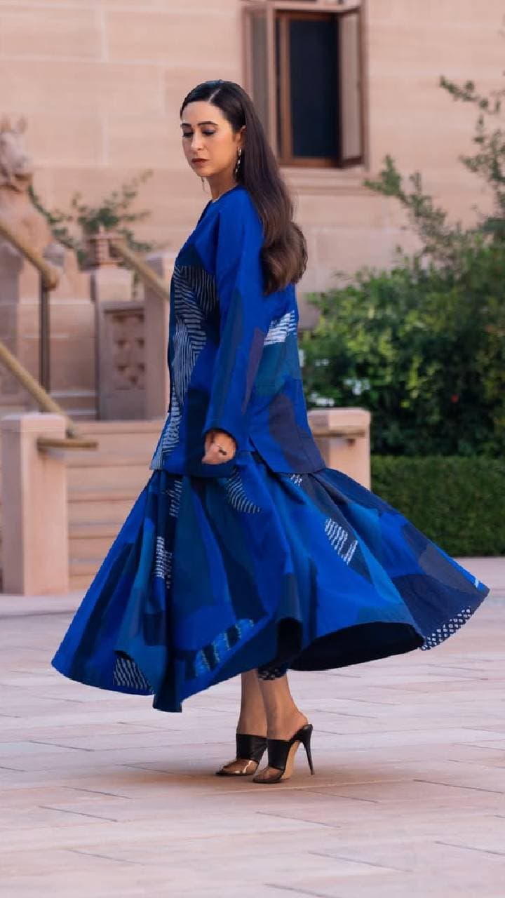 Mom’s hand block printed cotton has become old, so instead of getting rid of it, get a long skirt with white lining made. Adding lining will add strength to the skirt.