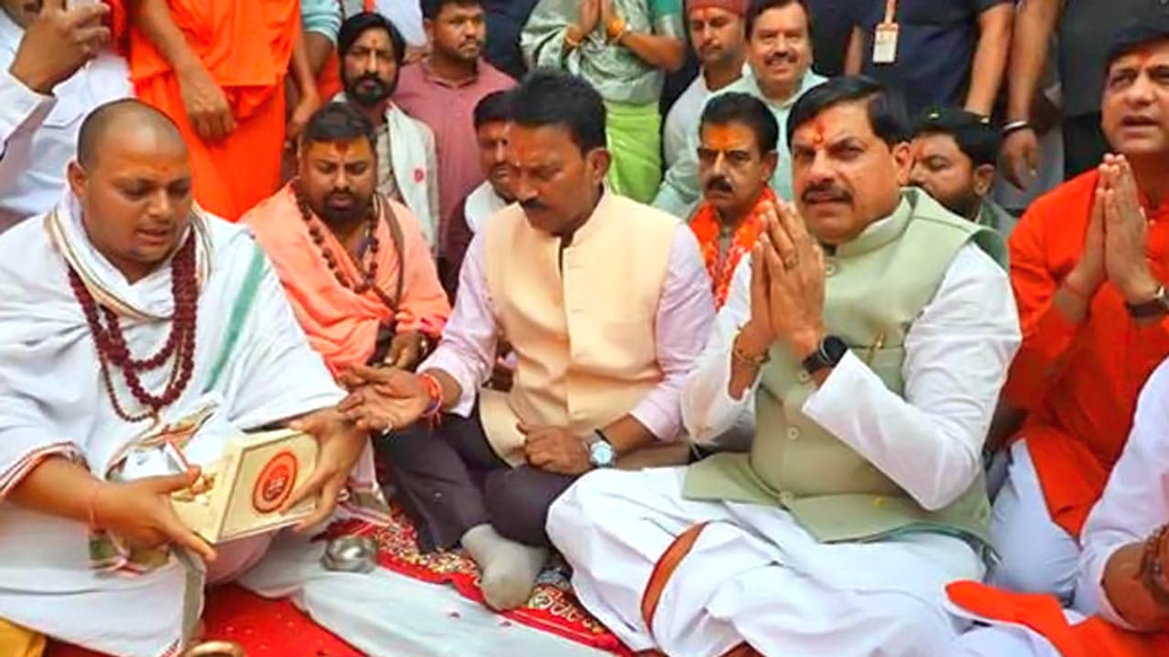 Chief Minister Dr. Yadav participated as the chief guest in the Govardhan Puja program organized at the Silk Center Gau-shala located in Khajuria of Hatod tehsil of Indore district. He performed Govardhan Puja amid Vedic chanting.