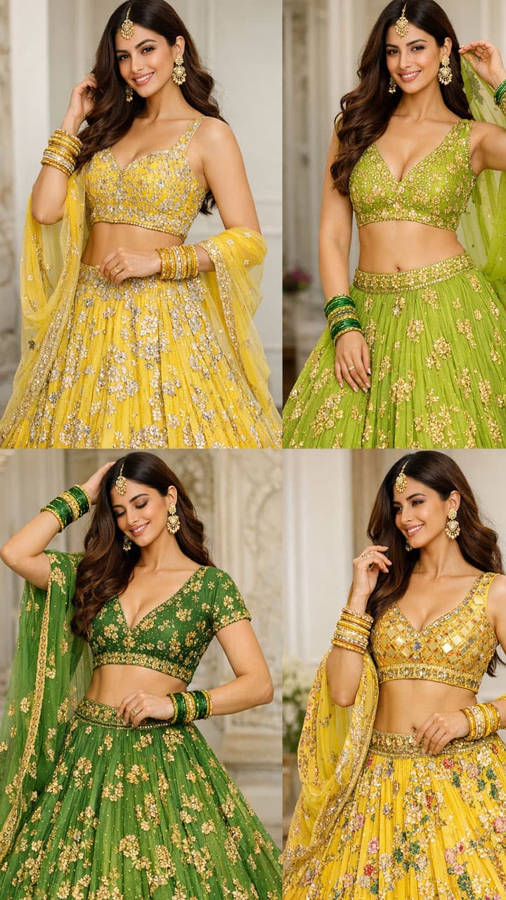 Yellow silver work lehenga also looks perfect for Haldi ceremony. You should make the blouse sleeveless or short instead of full sleeves, so that there is no problem in applying turmeric.