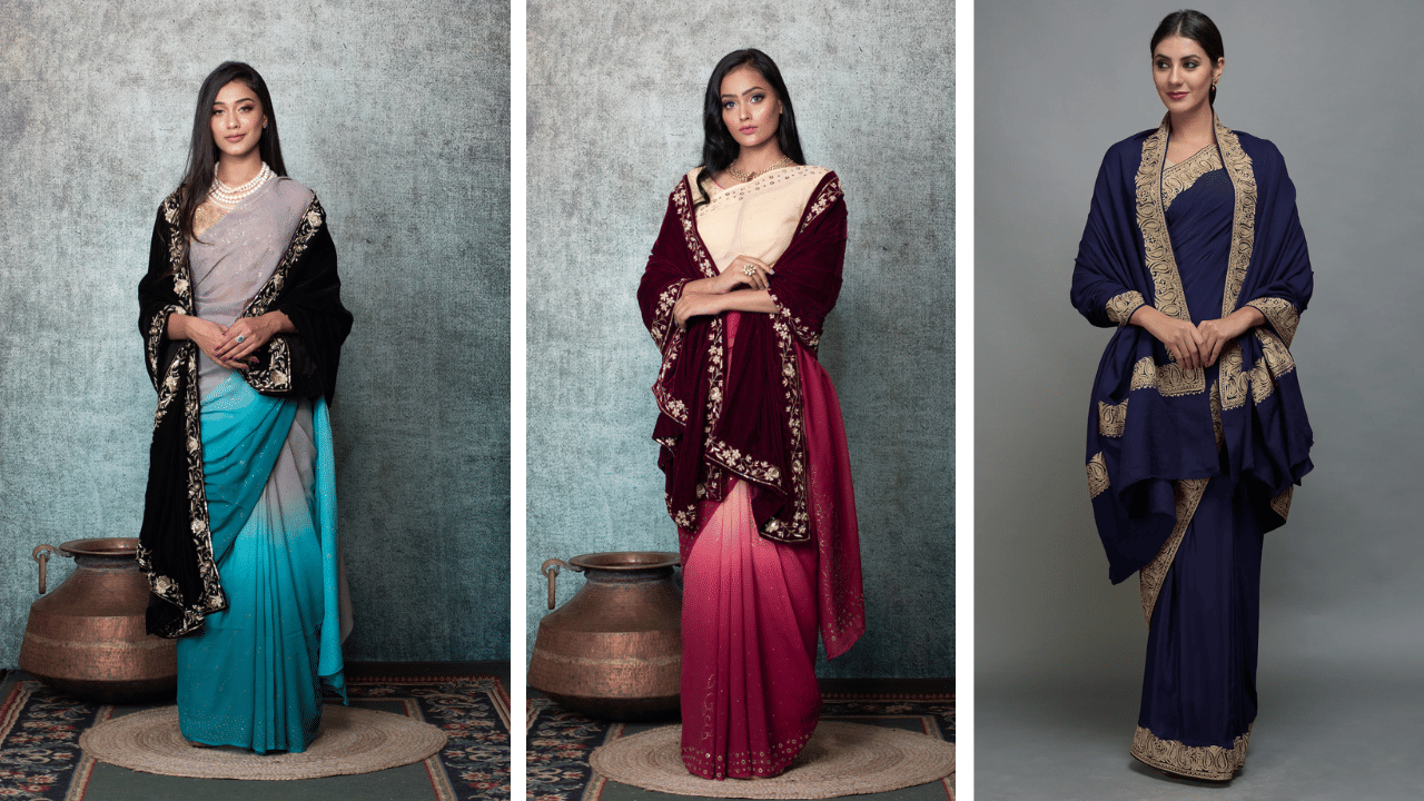 Stylish ways to drape a shawl with your saree this winter