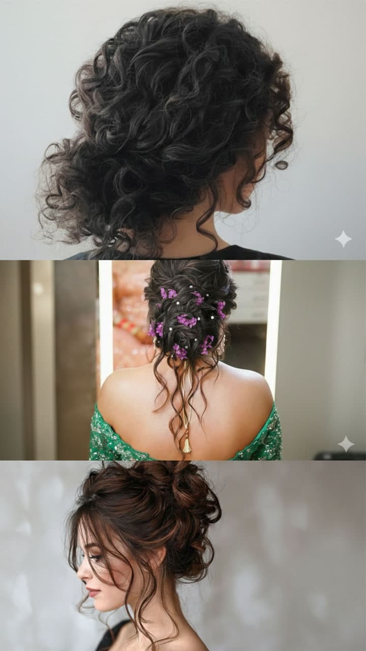 To make a bun in curly hair, apply live-in conditioner after washing hair. Lightly detangle the hair with your fingers and when the hair becomes 70-80% dry, make a bun.