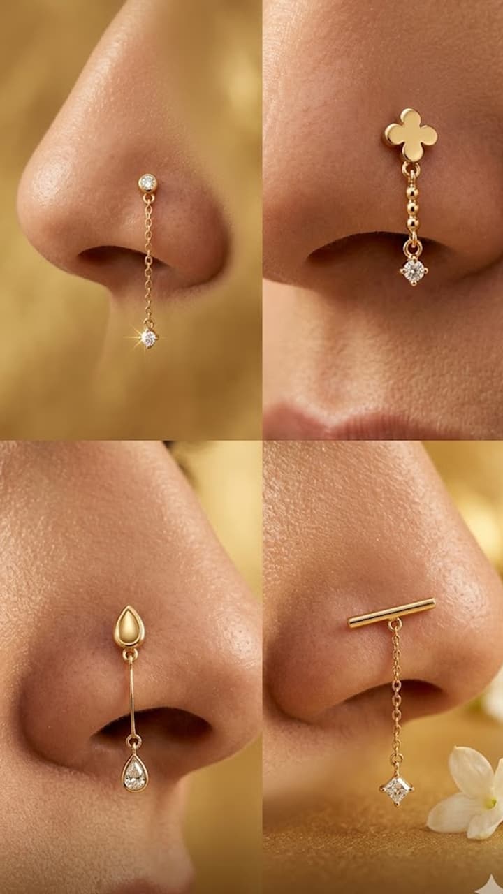 Dangle Nose Pin: Get a dangle nose pin made in 0.5gm gold, gift it to your daughter-in-law and mother-in-law. Gold Dangle Nose Pin In 0 5 Gram For Women Best Jewllery Gift Idea