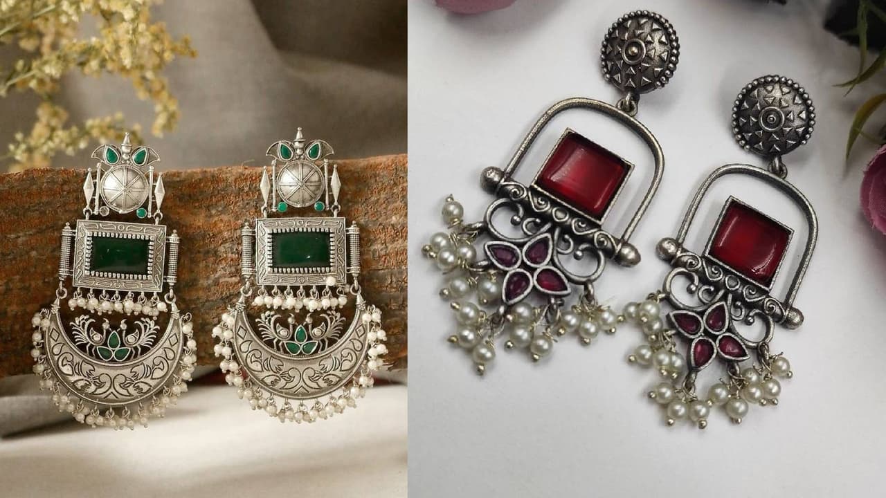 Oxidized silver dangler earrings are a timeless trend. These designs are considered best for boho and Indo-western look. These have intricate patterns and small bells or beads which look very beautiful when moved. These earrings give a simple yet stylish appeal when worn with kurtas, long dresses or sarees.