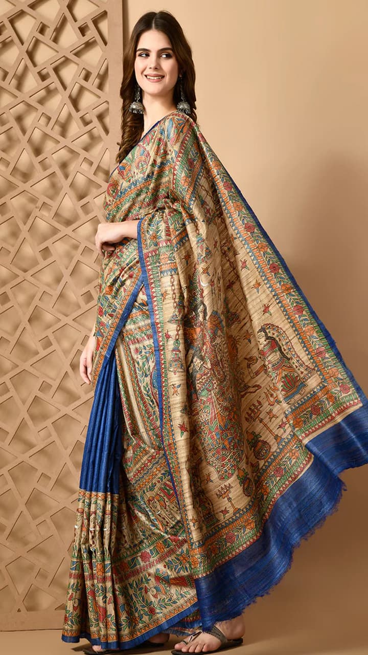 If you want to give a classic look in Haldi function or any festival, then choose this type of Madhubani print saree. The price of this saree is Rs 9,178. V