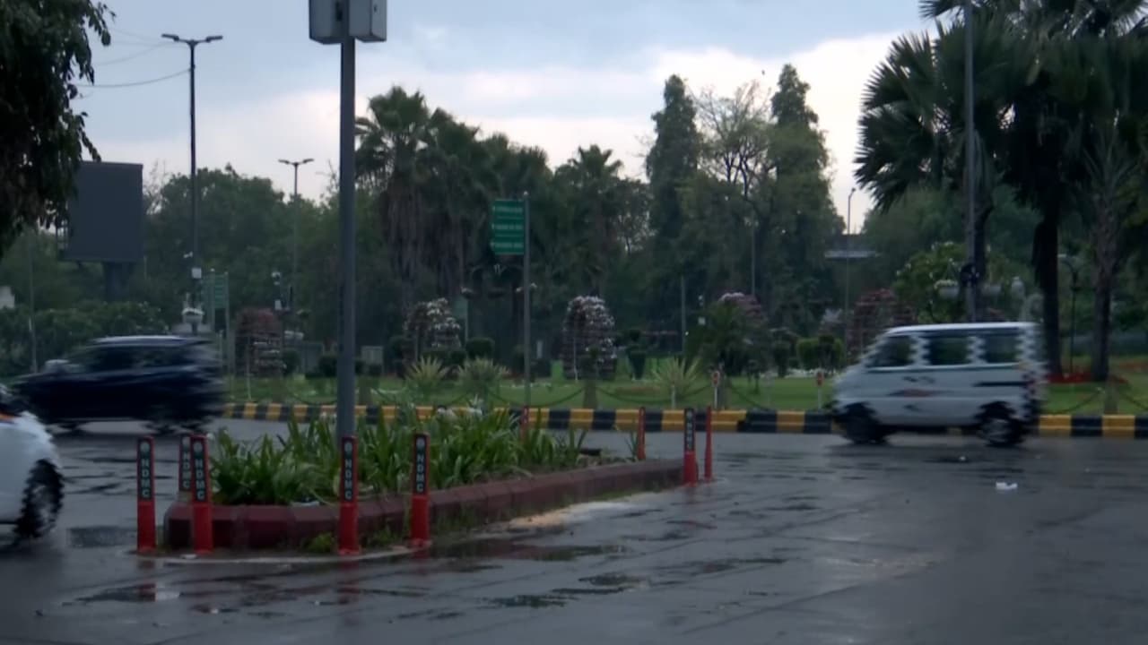 A change in weather was observed across New Delhi on Tuesday morning as light rainfall brought temporary relief from rising temperatures in the national capital. Overcast skies, damp roads and a noticeable dip in temperature were witnessed across parts of the city as commuters navigated through light showers.