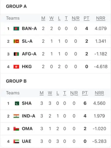 Still, their next opponent isn’t set in stone yet. Group A has a few twists left. If Afghanistan thrash Hong Kong and Sri Lanka beat Bangladesh by a healthy margin, the semi-final lineup could get a shake-up. That could decide who India A faces next.