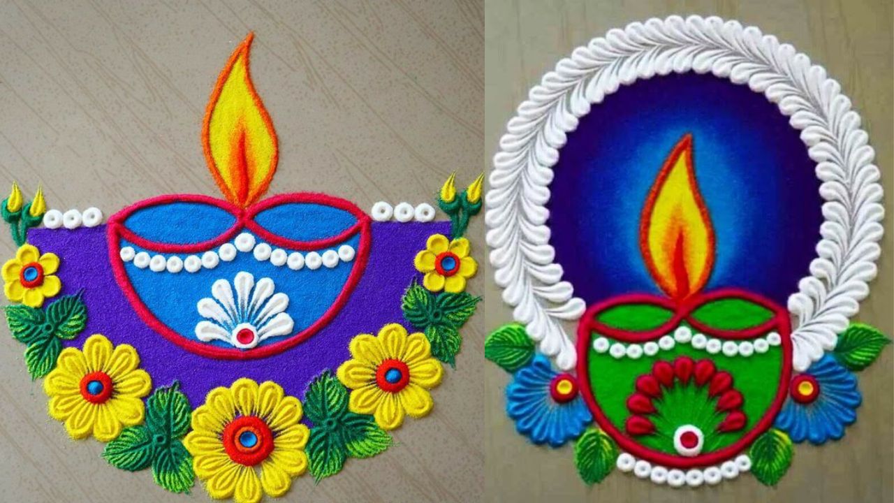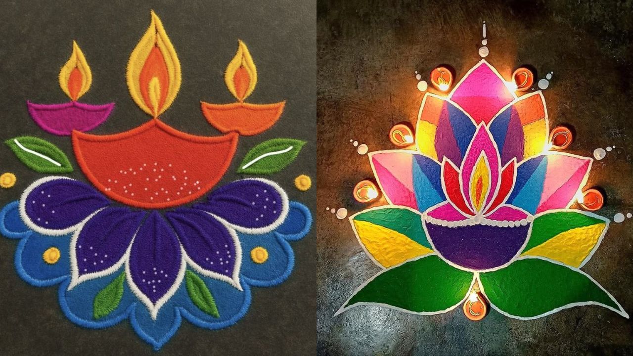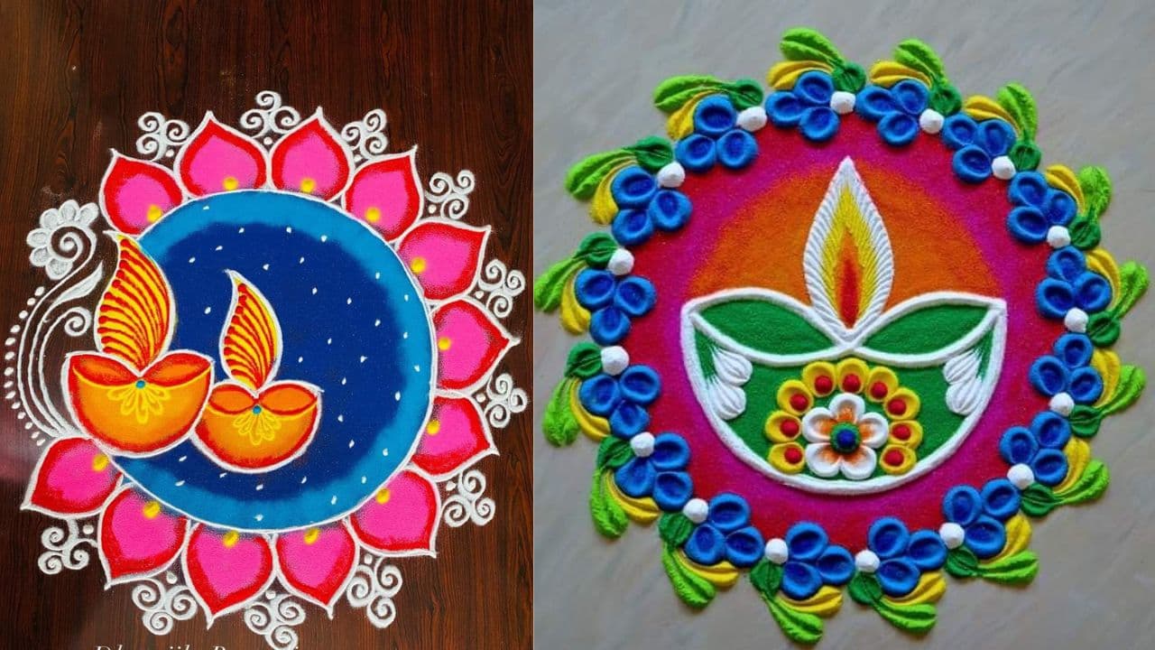 Dev Diwali Special Diya Rangoli: Dev Diwali is celebrated every year on the full moon date of Kartik month. If you also celebrate Dev Diwali at home, then definitely decorate the house with Rangoli. Here we have brought some wonderful designs of Diya Rangoli, which will enhance the beauty of the home.