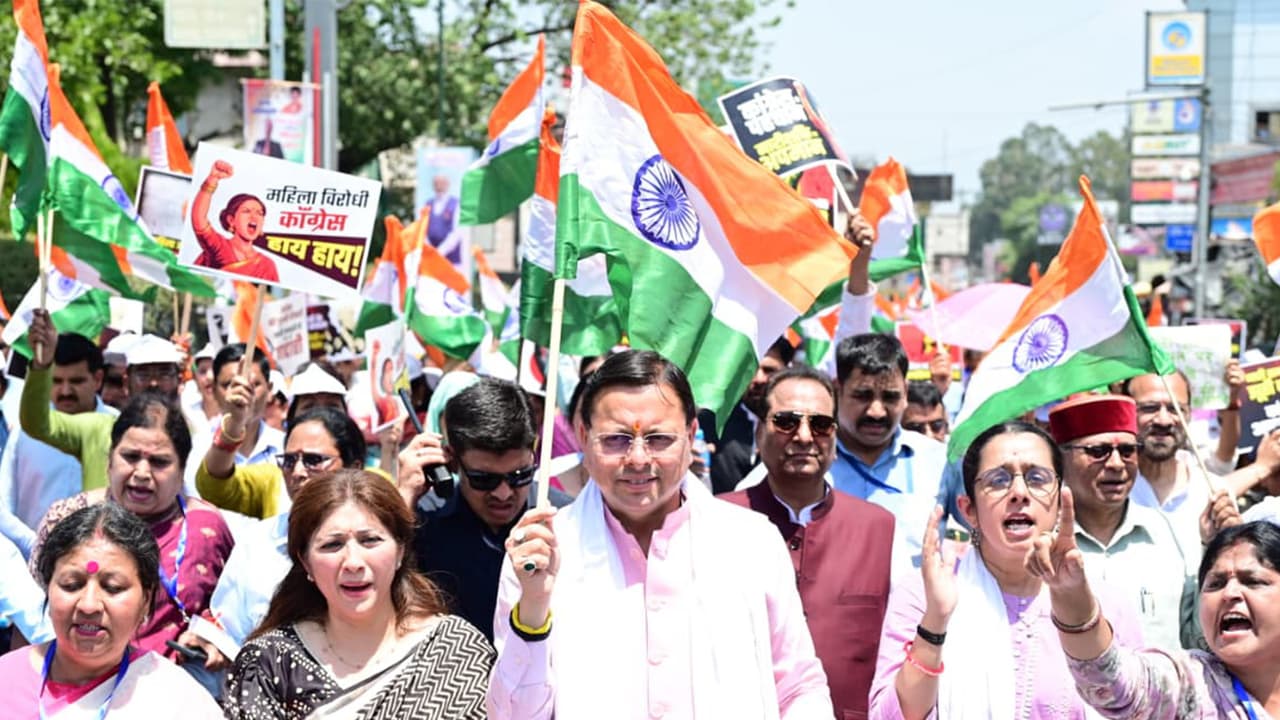 Uttarakhand CM Pushkar Singh Dhami led a ‘Mahila Jan Aakrosh Rally’ in Dehradun, accusing the opposition of conspiring to block the Nari Shakti Vandan Act and depriving women of their rightful representation in the country’s democracy.