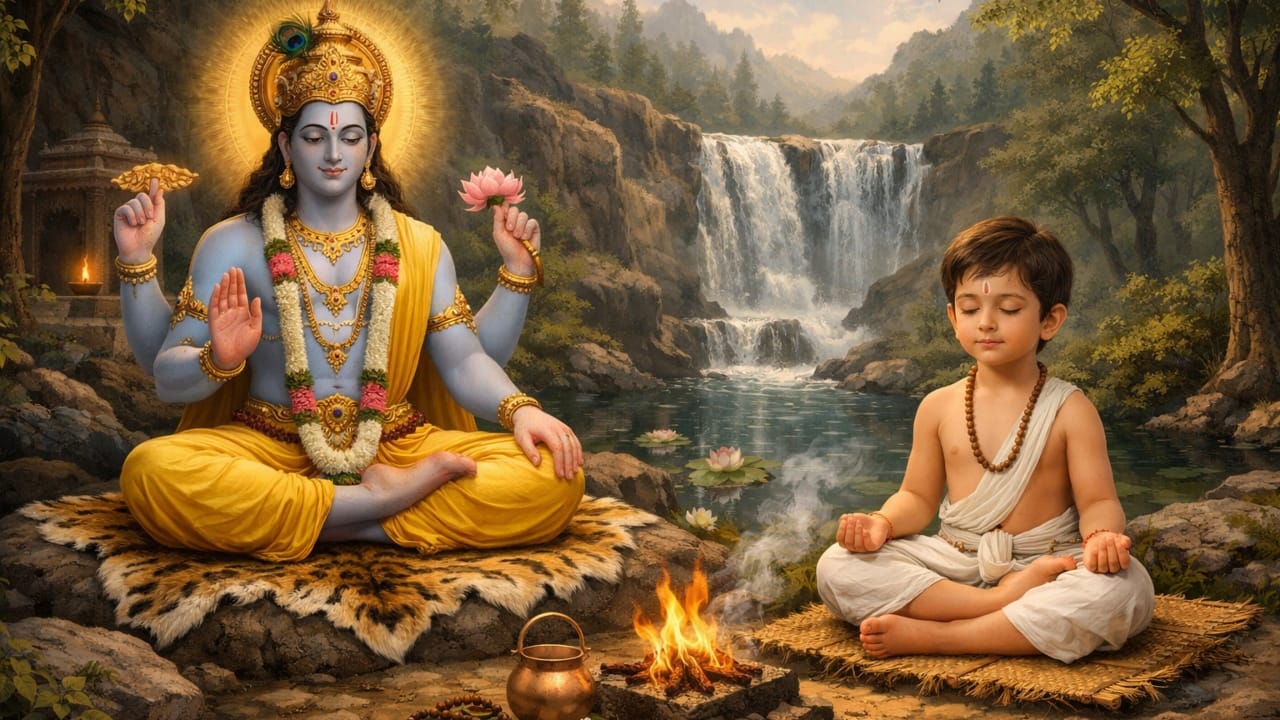 Dhruv started penance in Madhuvan situated on the banks of Yamuna. Gradually the level of his penance increased. His energy created havoc in all three worlds. After this, Lord Vishnu himself came to earth and asked Dhruv to ask for a boon. Dhruv said that God, I want a place from where no one can remove me nor can anyone insult me. Then Lord Vishnu gave Dhruva the highest and immovable position in the universe.