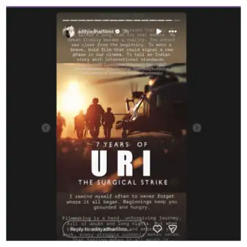 Taking to his Instagram Stories, Aditya wrote, “11th January 2019. A day that changed my life forever. My first film, Uri, released that day. I had waited a long time for that moment. My dream finally became a reality. The intent was clear from the beginning. To make a brave, bold film that could signal a new phase in our cinema. To tell an Indian story with international standards.”