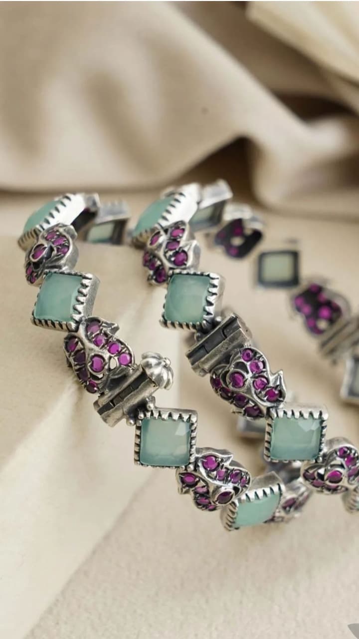 Young girls and madir women can try the single bangle which gives a simple + urban look. Keeping it silver plated, small gems have been attached in the middle, which is giving a very sexy look.