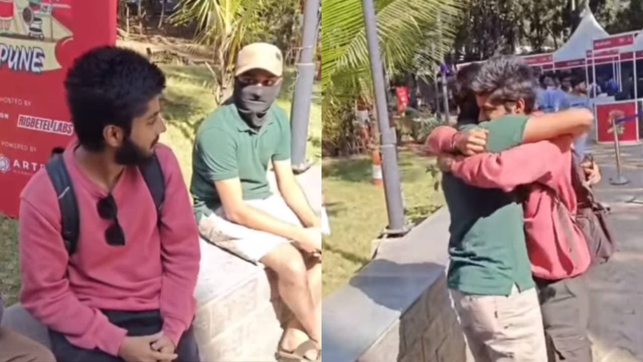 A young man surprised his friend in Pune after traveling 12,800 km from America. The video of the friend’s emotional reaction to the mask prank is viral, which shows their deep friendship.