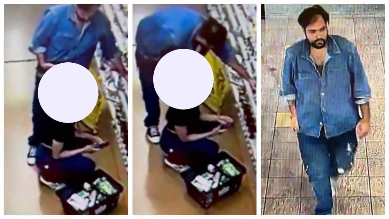 In the video, it is seen that a woman is leaning and looking at the goods from the supermarket rack. Then a man wearing a blue shirt and blue pants comes near her and tries to touch his private parts near the woman’s head. Suddenly seeing someone so close to her, the woman gets shocked and turns back. By then the person starts behaving as if he too is watching the same thing. After this the woman gets up and leaves from there.