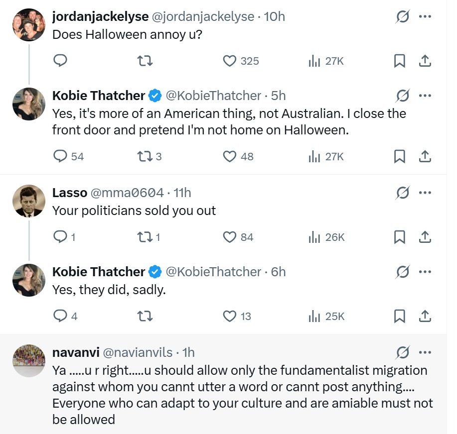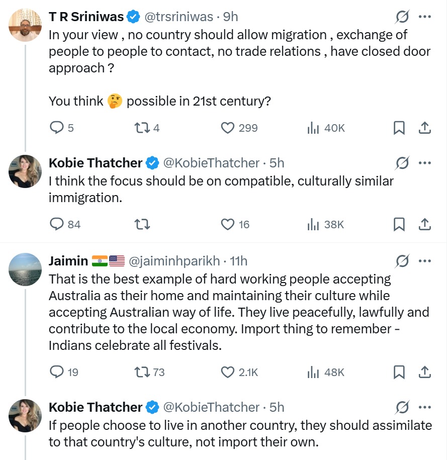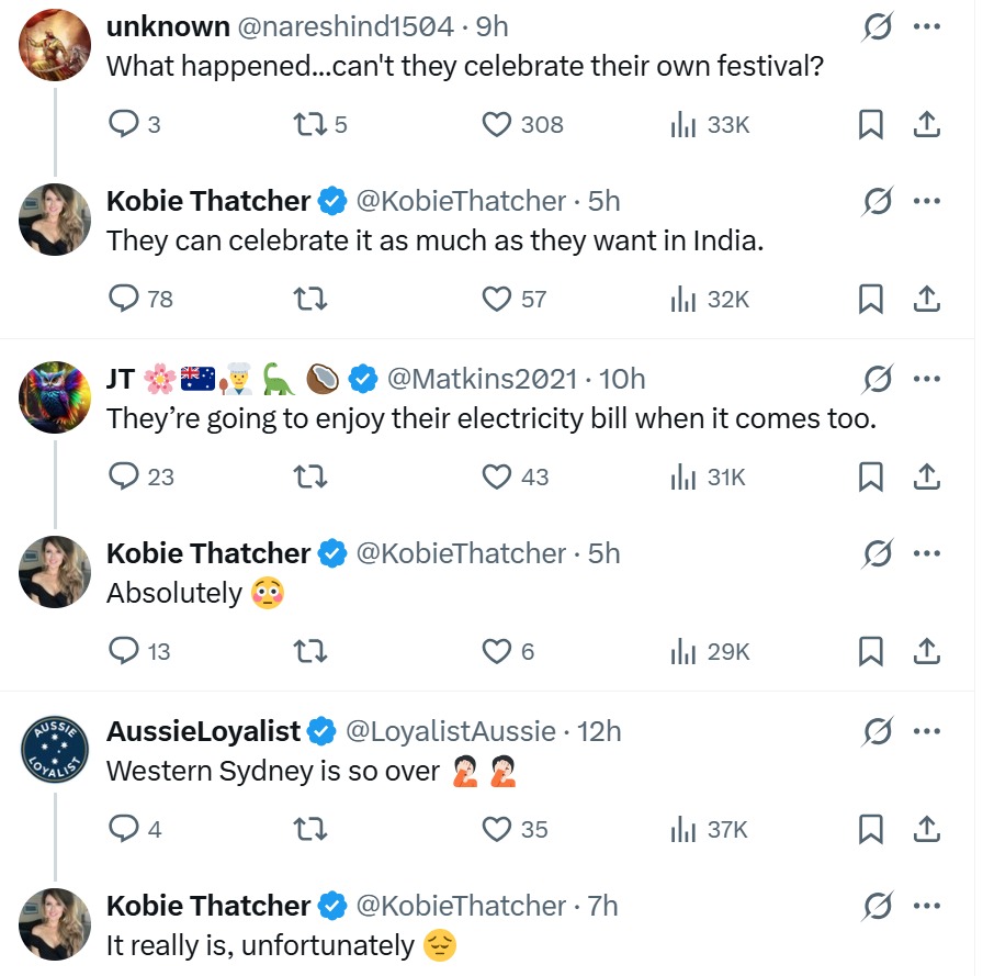 Despite the criticism, Thatcher stood by her comments. In a reply to one user, she wrote, “They can celebrate it as much as they want in India.” This remark fuelled further anger online, with many accusing her of being divisive and ignorant of Australia’s multicultural identity.