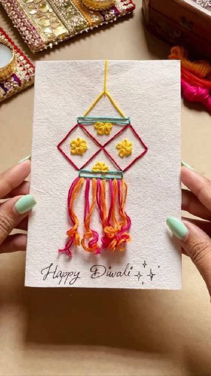 With the help of Kandil cutout and golden border, you can make Diwali cards with the help of children. Give such cards to relatives and friends.