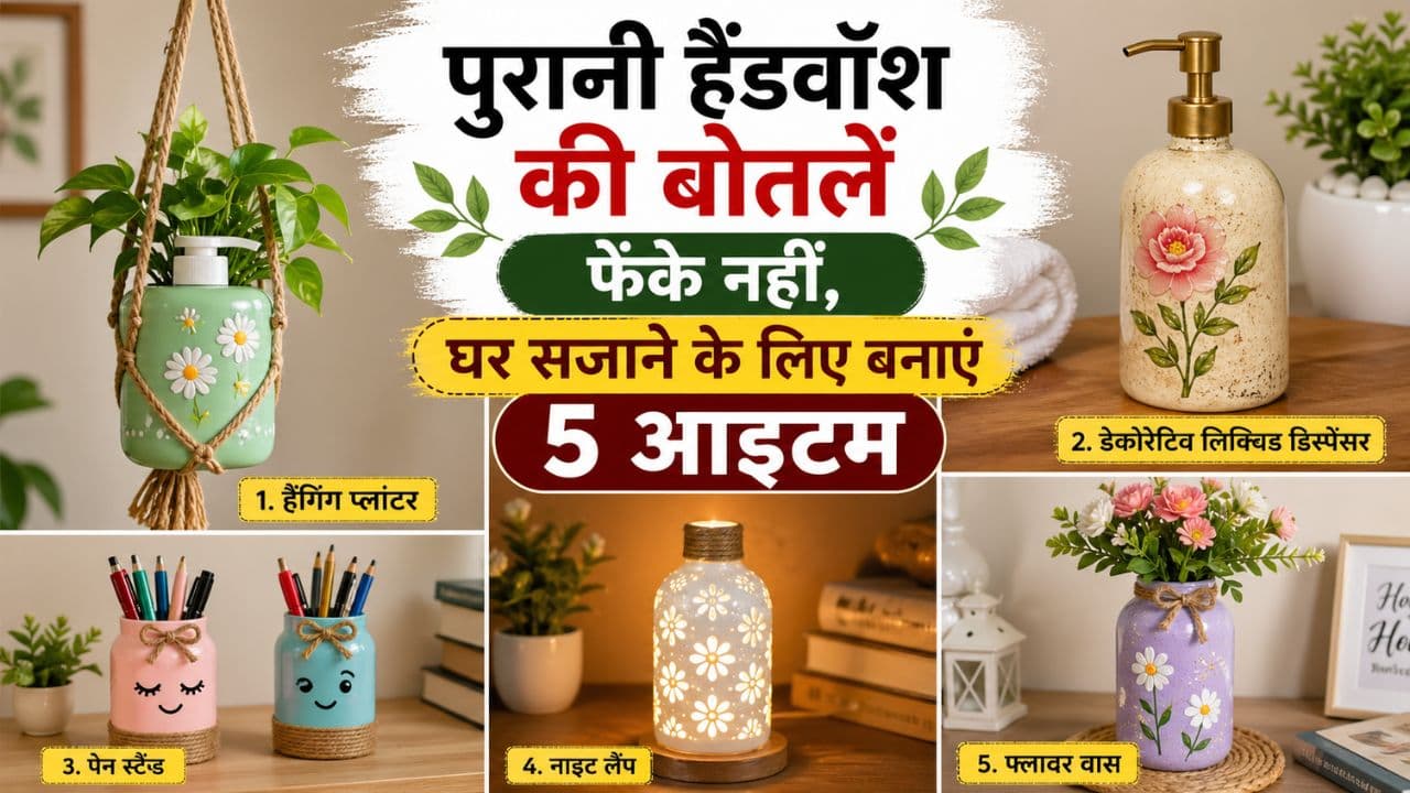 DIY Handwash Bottle Craft: Instead of throwing away old handwash bottles, make 5 amazing home decor items like flower vases, planters, pen stands and LED light decor. Give a stylish and creative look to your home at low cost.