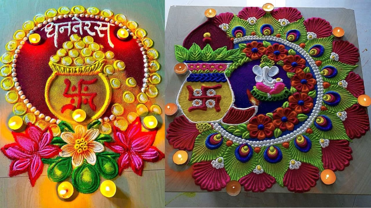Diya & Kalash Rangoli: Make 5 small and easy rangoli designs to welcome Goddess Lakshmi on Dhanteras. 5 Diya and Kalash Rangoli Design for Dhanteras