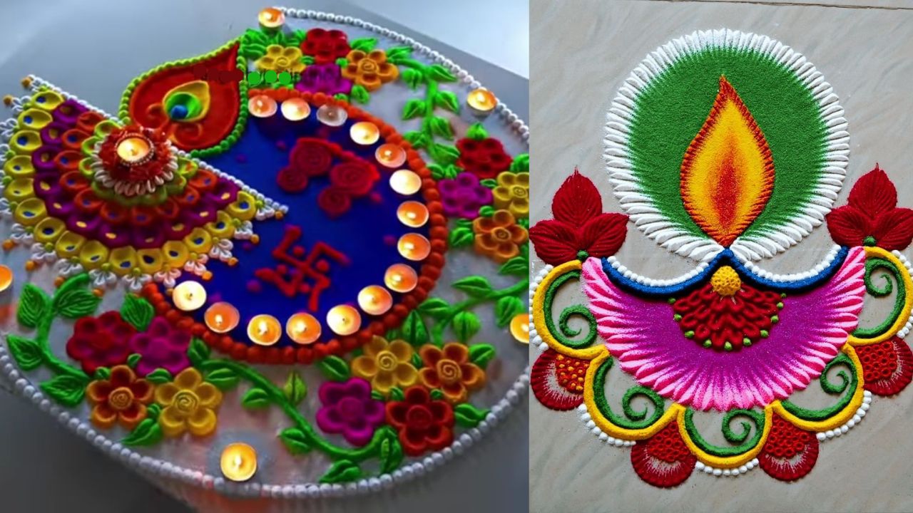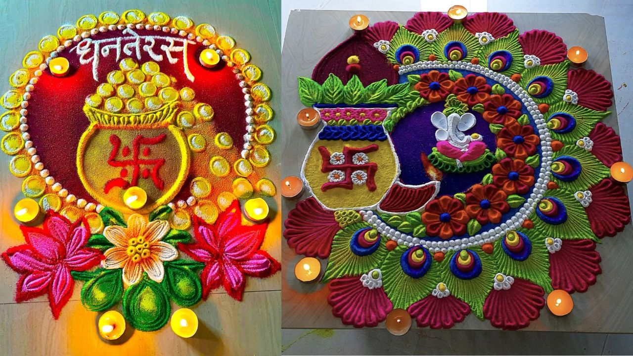 Diya Rangoli With Kalash Pattern: Making Diya and Kalash on Dhanteras is considered auspicious, so today to make your Dhanteras auspicious, we have brought some wonderful patterns of Diya and Kalash Rangoli which will enhance the beauty of your maindoor, courtyard and puja room.