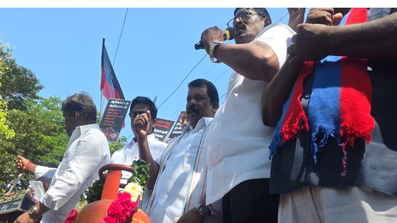 TN Health Minister MA Subramanian led a protest in Chennai with DMK and its allies against the Centre, alleging an LPG cylinder shortage. Protesters demanded increased supply. CM MK Stalin also criticized the Union government for the crisis.