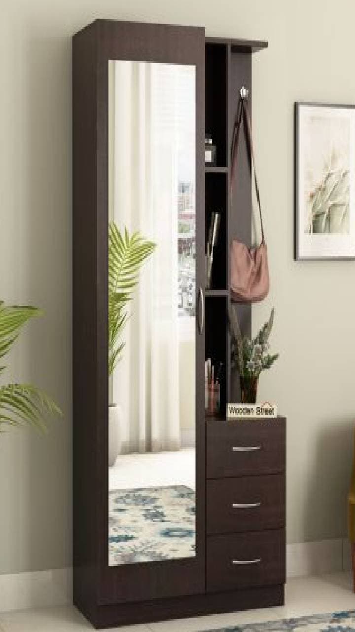 For wives who love the vintage look, this dressing table is a dream come true. The round mirror, light colors and matching stool make it look very royal.