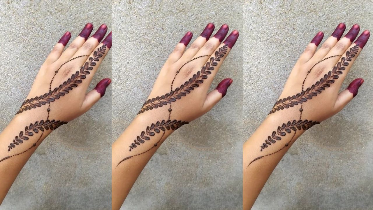 If you are looking for a beautiful design for the back hand, which is easy to apply, then there is nothing better than this. First look at the image carefully and make a similar cylindrical dot in your hands. After making the dot, connect it by pulling it with the ear bud and the beautiful design is ready very easily. Similarly, you can make two or three vines instead of one, which will make the hands more beautiful.