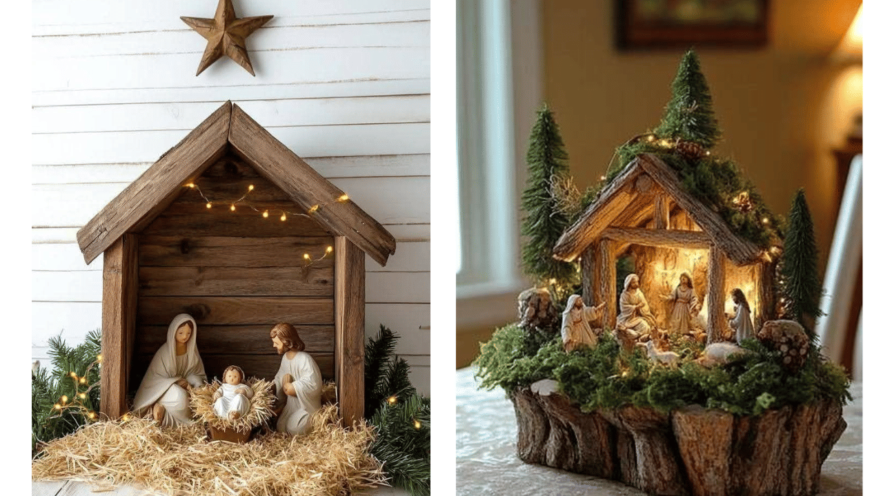Wooden fences, miniature barns and bark pieces enhance a rustic atmosphere. This style adds warmth and authenticity to any Christmas crib design. It suits homes with vintage décor. The natural textures highlight the nativity story beautifully. Wooden pieces last for years and remain sustainable. This becomes a unique crib design for Christmas 2025 with timeless appeal and easy maintenance.