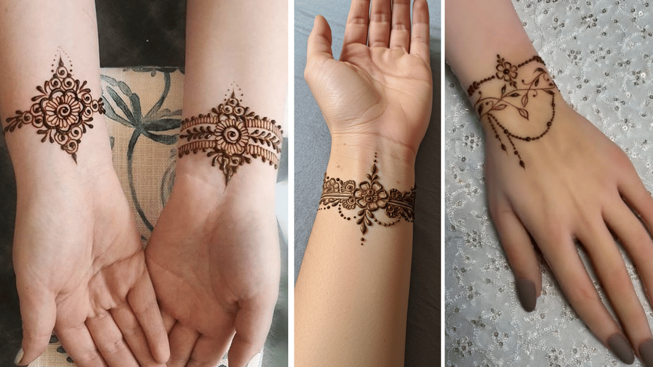 Mimicking ornate bangles with florals, lines, and dots wrapping the wrist, this design adds bracelet-like allure for Eid without jewellery. Minimal hand extension makes it ideal for 2026 prayers and feasts, blending simplicity with festivity for a polished, contemporary mehndi statement.