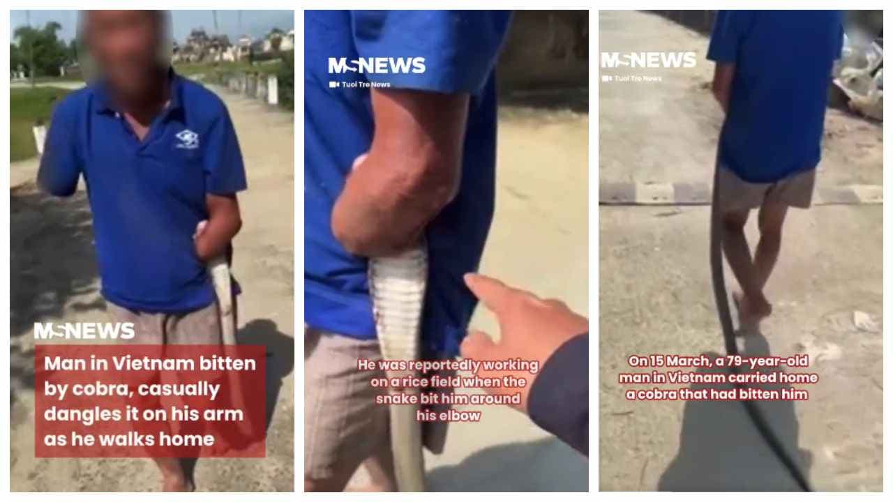 A 79-year-old armless man was bitten by a cobra in Vietnam. He killed the snake, trapped it in his elbows and himself reached the hospital. The video of his extraordinary courage has gone viral.