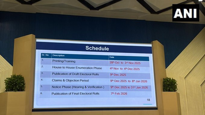 The ECI also clarified that Assam is not part of this phase, as its voter revision will be announced separately due to an ongoing citizenship verification programme under Supreme Court directions.