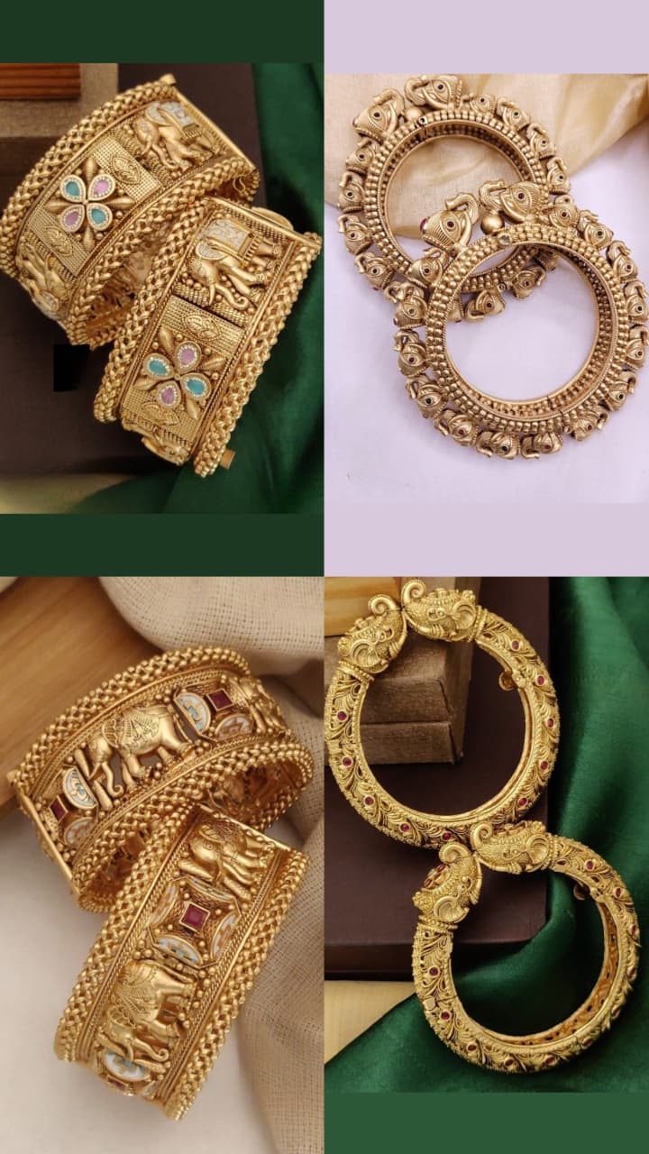 Everyone wears glass bangles. Wear Gajanan Kada giving a royal and regal look to your hands, the Rajwadi pattern and carving work is special. By wearing this there will be no need to wear bangles.