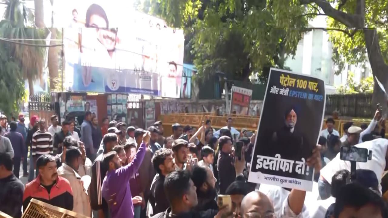 Indian Youth Congress and Opposition MPs protested demanding Union Minister Hardeep Singh Puri’s resignation over alleged links in the Epstein files. Rahul Gandhi made the claim, which Puri vehemently denied, calling it baseless ‘buffoonery’.